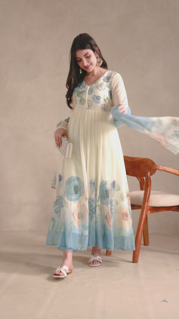 La Radi | Chiffon Digital Print Anarkali | Hand Embroidery, Cotton Pant →