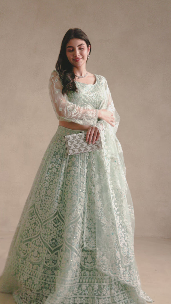 La Radi | Soft Net Lehenga Choli | Embroidered Intricate Beads Work →