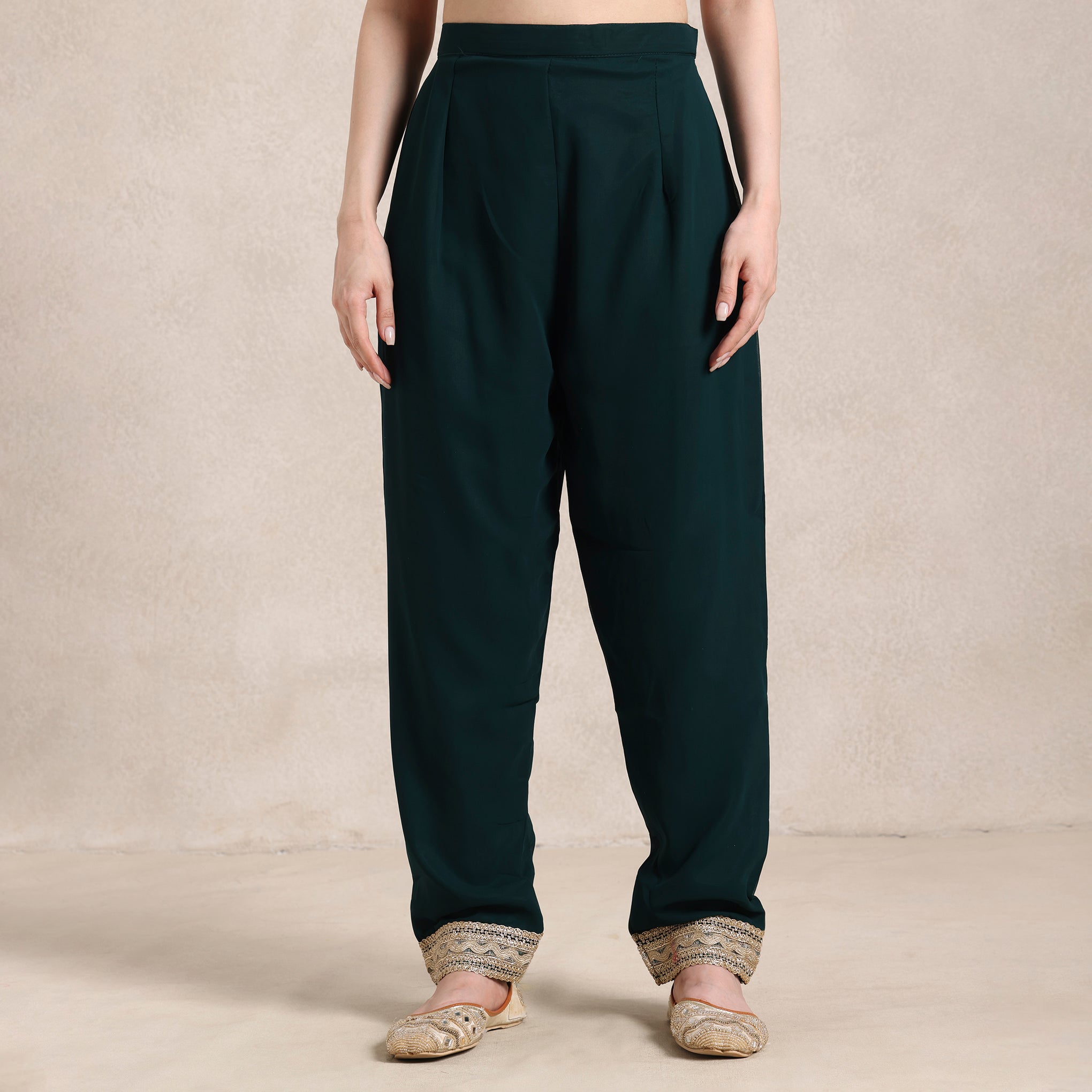 Designed for long events, the breathable georgette drape keeps movement easy from mehendi to reception. The coordinated embroidered pant adds streamlined comfort and a polished fall.