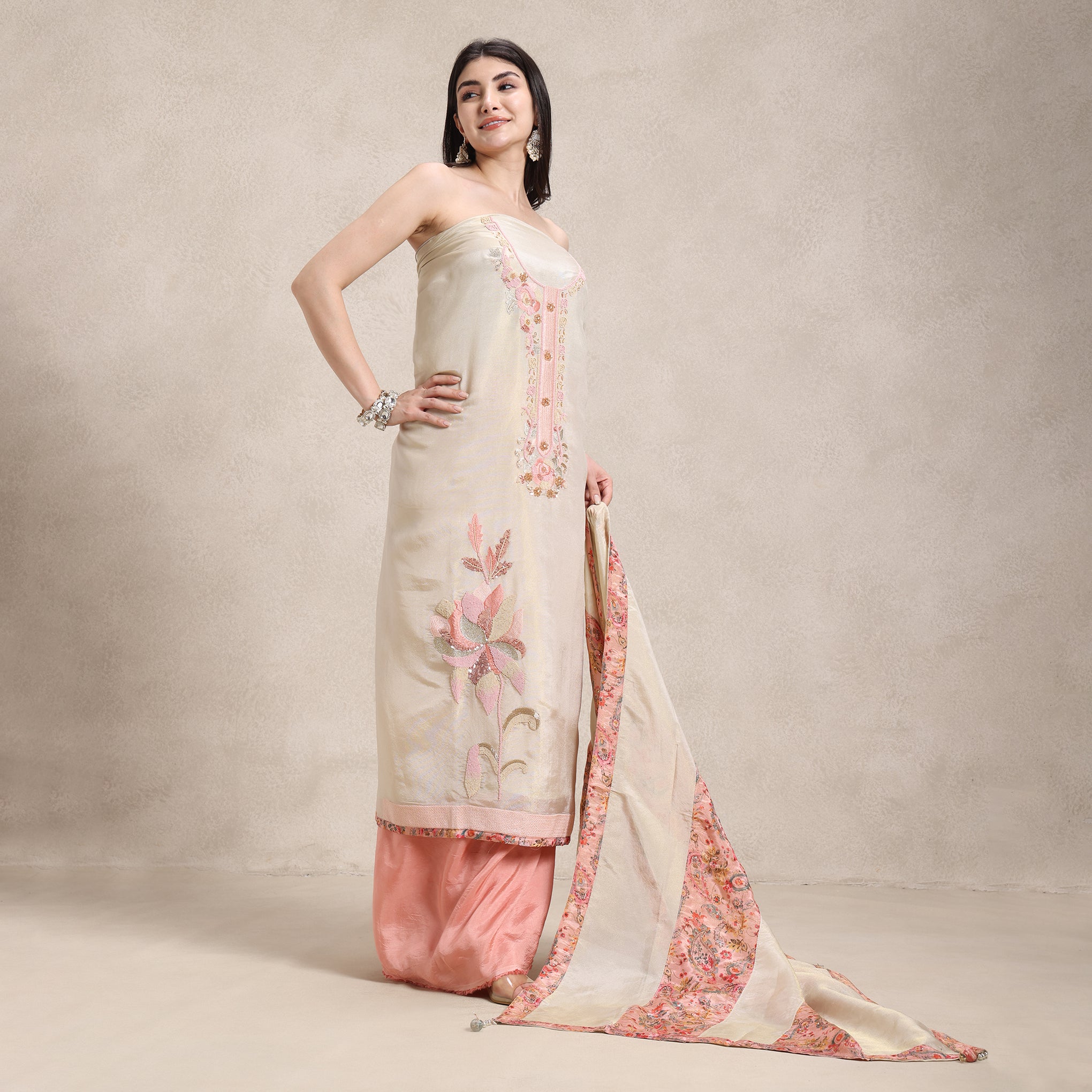• Shimmer Kameez Fabric (Resham + Fine Beads Work)