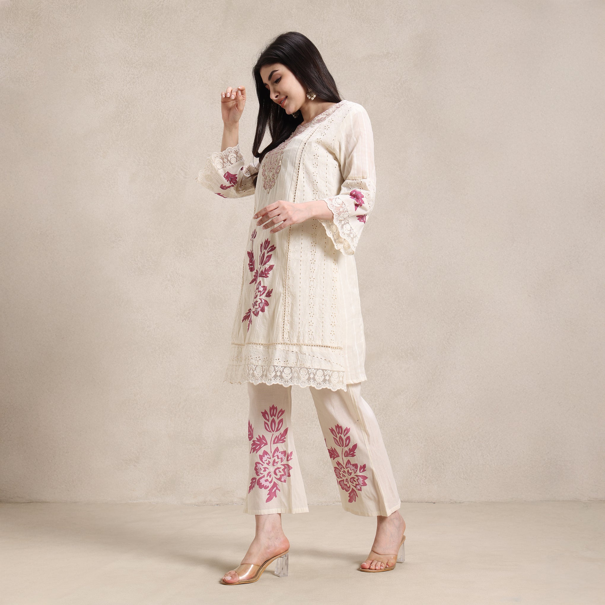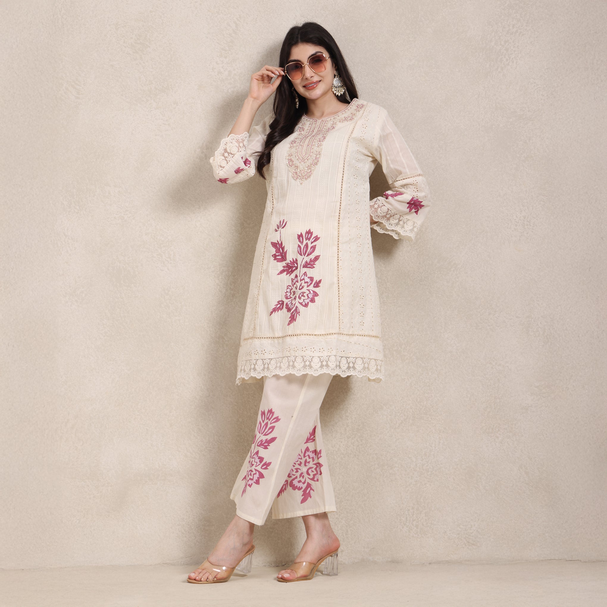 The coordinated silhouette keeps movement easy, while the cotton dupatta adds comfort and balance—perfect for daytime mehendi, sangeet evenings, or casual‑chic festive gatherings. With crease‑friendly fabrics and a polished fit, this co‑ord is as practical as it is pretty.
