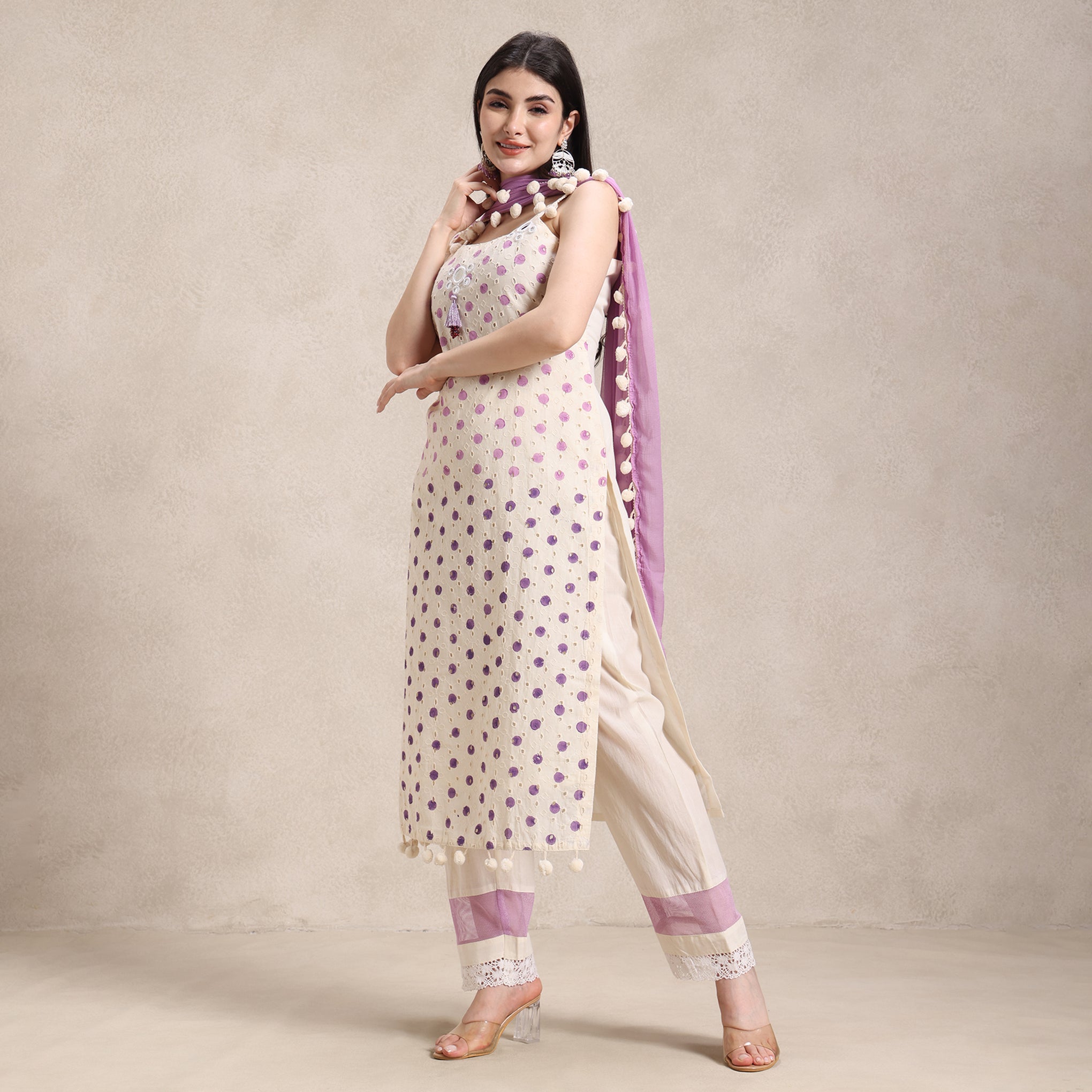 The playful trims and airy drape create a chic festive casual lawn cotton suit with playful pom pom lace, effortless for a daytime brunch lawn cotton suit with chiffon dupatta and polished enough to double as an office friendly lawn cotton kurta set with subtle pom pom trim.